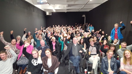 Following the screening the group discussed their experience and the R2W campaign to challenge the unfair welfare sanctions system. Over 200 letters were signed for the now ‘unemployed’ MLA’s running for election on March 2nd – The letters offer advice and solidarity and support to any who may not get their jobs back. For those who are lucky enough to be elected the letters call on MLA’s to ensure the #PeoplesProposal is implemented to protect the sick, disabled and unemployed from the cruel sanctions without due process or impact assessment. The MLAs will receive their ‘dreaded brown envelopes’ this week.