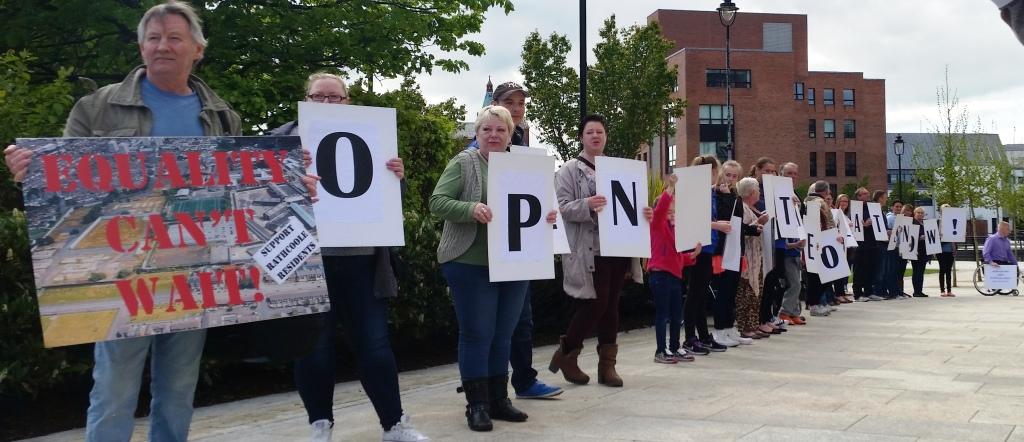 On Wednesday 13th May 2015 residents from the Rathcoole estate in Newtownabbey were joined by Equality Can’t Wait and Homeless Action activists for a public action at the Northern Ireland Housing Executive and the offices of the Minister for Social Development calling for urgent action and answers.