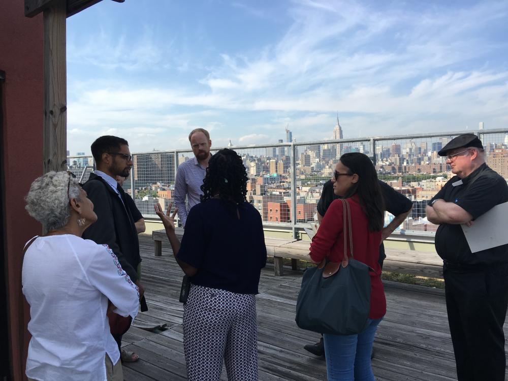 Organisers and leaders from Manhattan Together looking at an "affordable housing scheme" by Breaking Ground hoping to replicate it in vacant land in their neighbourhood